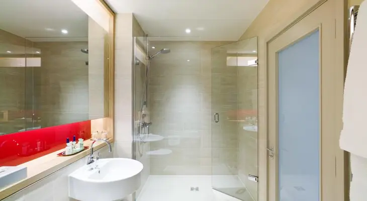 “Angular, glass-fronted central hotel, with rooftop views from the upper floors and 103 smartly appointed rooms. Double, triple and family rooms available at a year-round flat rate.”