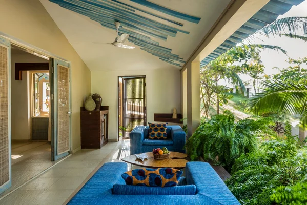 “This smart and stylish contemporary hotel overlooks the wild beauty of Vagator Beach.”