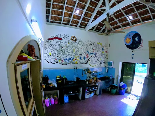 “Traveller-painted murals cover the walls in this very chilled backpacker place near the main village.”