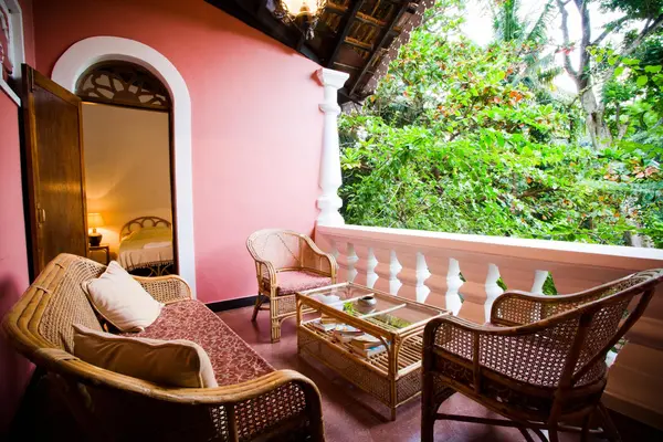 “This heritage guesthouse is on one of North Goa's narrowest lanes, behind the massive Taj resorts.”
