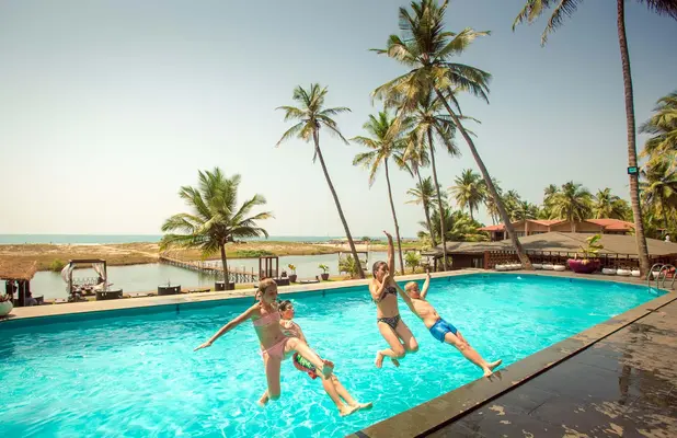 “Sandwiched between the main road and a lagoon, with Mandrem Beach in the distance, Riva Beach Resort is a quiet, elegant, three-and-a-half pearl boutique resort with 78 rooms.”
