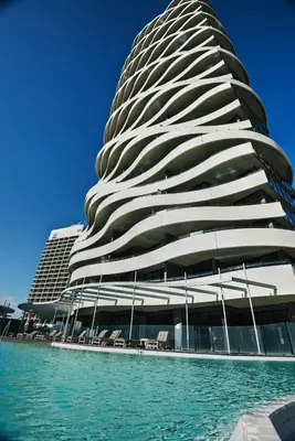 "Towering over glam Broadbeach, this funky high-rise with its wobbly, wave-inspired facade is impossible to miss." Full review