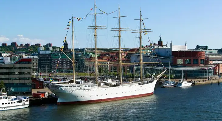“Hotel Barken Viking is one of the few remaining four-mast barques in the world. She is moored in Gothenburg’s Guest Harbour only a stone’s throw from the Gothenburg Opera House.”
