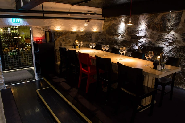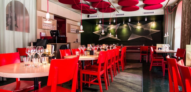 "A lively, friendly eatery divided into three parts: a bar with bench seating and an open kitchen; a bright red room with a characterful cellar and a glass wine cave; and a superb wrap-around terrace" Full review
