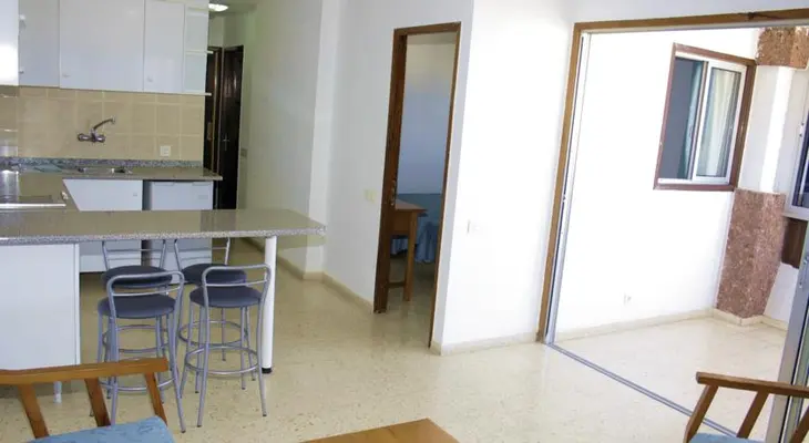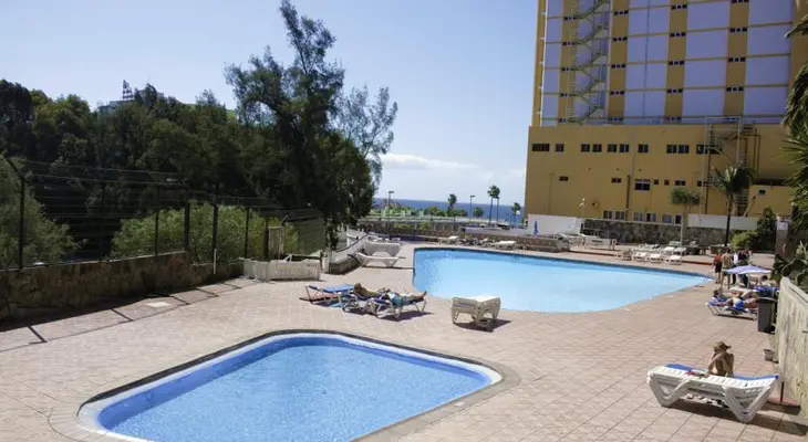 “The 200-room budget Corona Roja is a 15-story tower in Playa del Ingles made up of studios and one- and two-bedroom apartments with balconies and great ocean views.”