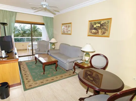 “The 231-room Hotel Riu Palmeras is an older chain hotel located in Playa del Ingles, a five minutes' walk from the spectacular beach and seafront promenade that stretches for miles in either direction.”