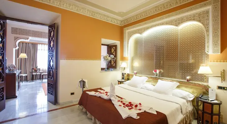 "This luxuriously decorated hotel, with around 126 rooms, is housed within an impressive Moorish-style palace on the edge of the hill that the Alhambra stands on (five minutes’ walk away)."