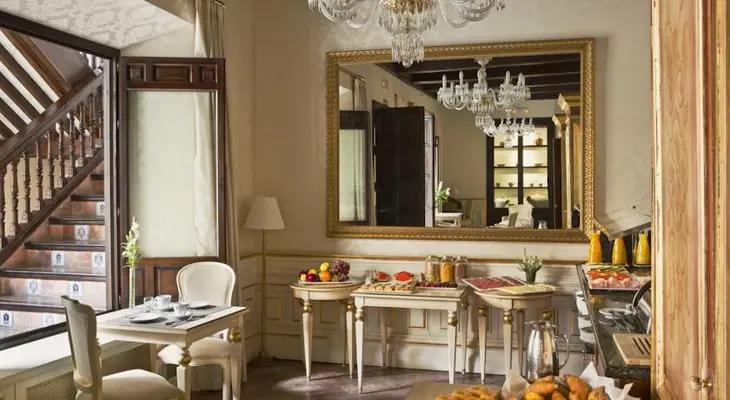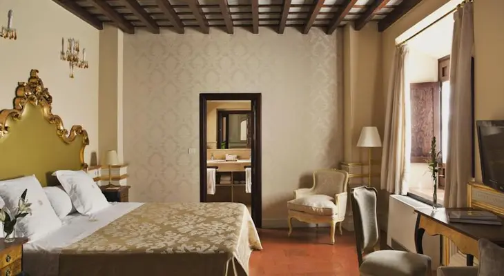 "Elegantly ensconced in a venerable 16th-century building, this classy hotel charms with its delightful old-world decor: beds with gilded headboards, coffered ceilings, a lovely central courtyard." Full review