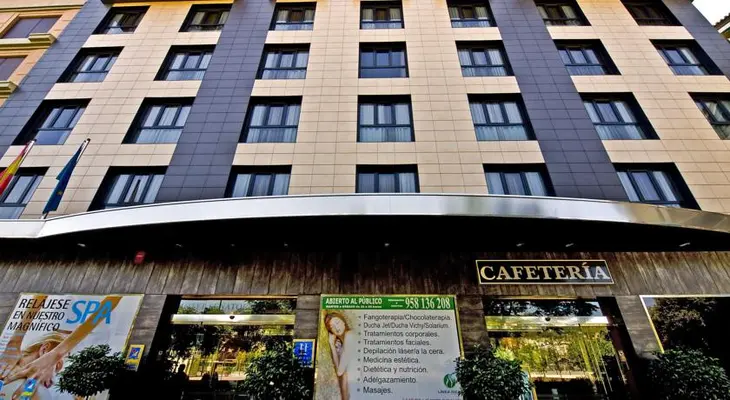 “The 83-room Senator Granada Spa Hotel is a quiet chain hotel next to a park outside the center of Granada.”