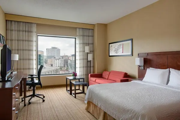 “The Downtown Marriott is newly remodeled, fresh and clean. You can stay for a good price and, hopefully, get a room with a river view.”