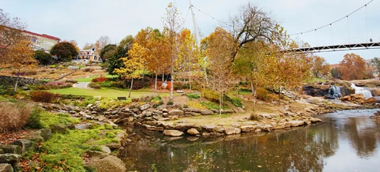 Located in the heart of downtown, the park features beautiful stonework, walking trails, waterfalls, picnic areas, lush gardens and public art installations. — U.S. News & World Report
