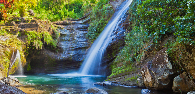 “About 8 miles (13 km) north of St. George's, a turnoff from the West Coast Road leads to Concord Falls—actually three separate waterfalls.”