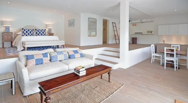 “Situated away from the city accessible only via windy, unkept dirt roads...this discreet romantic hideaway is nestled on 4 hectares of unspoiled land at the southwestern tip of the island.”