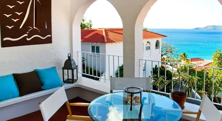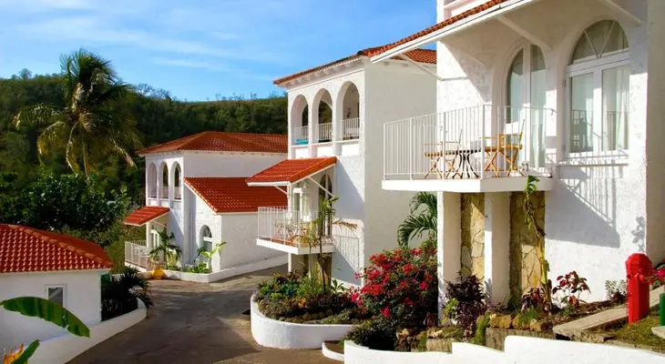 "The quaint hotel, with its many small white buildings topped with coral colored roofs, leisurely reclines on the lush, green hillside just above Grand Anse Bay." Full review