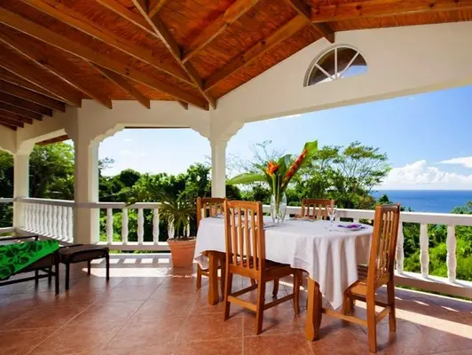 “A bright and breezy bed & breakfast on Grenada’s west coast, perched on a steep green hillside with views of the Caribbean Sea.”