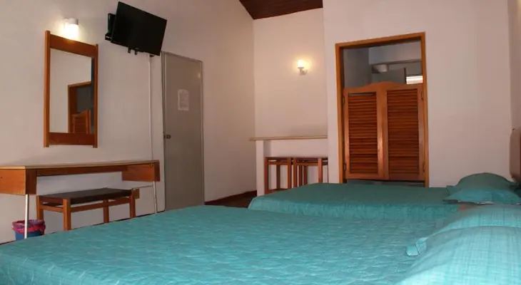 “Around the corner from the Ana-Isabel, with small but neat rooms, all equipped with a TV and ceiling fan.”