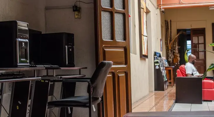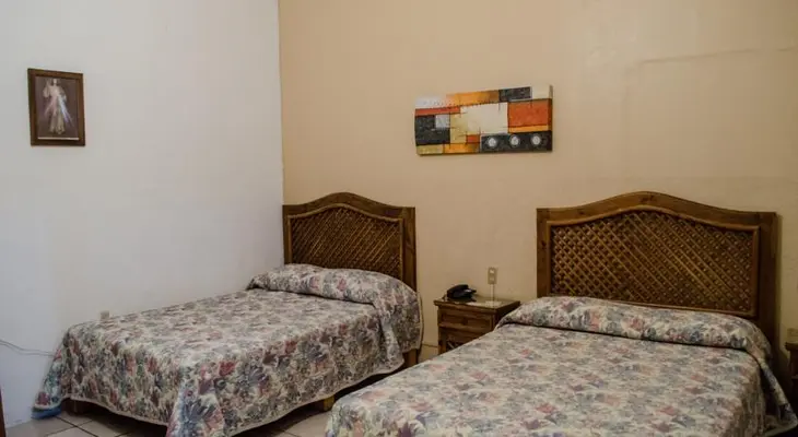 “Spotless rooms around a covered courtyard, but only the upstairs rooms with shared bathrooms have outside windows. Ring the bell at the front door for entrance.”