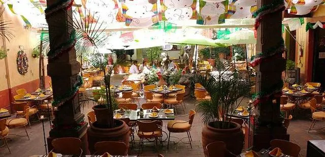 "Relax with tasty Mexican dishes at the tables along the sidewalk or under the palms and by the fountain on the patio."