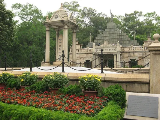 “A replica of the Statue of Liberty watches over the tomb of 72 Chinese revolutionaries. ”