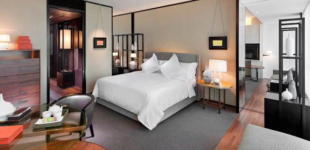 "In the 263 guest rooms, walnut and leather furnishings in a low-key, masculine palette of smokey greys and biscuit tones are enhanced by subtle, considered lighting and floor-to-ceiling windows." Full review