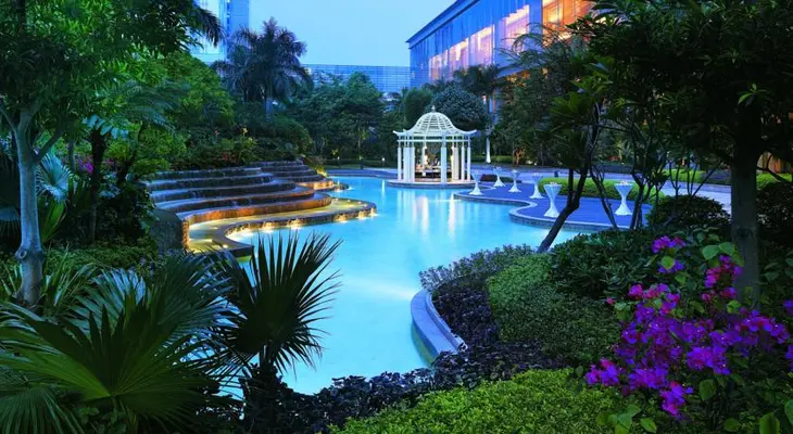 “The 704-room Shangri-La Hotel Guangzhou is an enormous high-rise hotel on 12 acres of manicured grounds.”