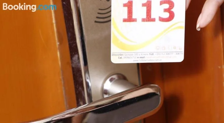“The large marble-floored rooms are roomy (though some are dark and windowless) and have high-end shower fixtures, minifridge and flat-screen TV.”