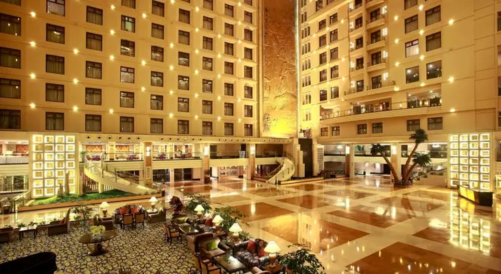 "This Chinese-managed hotel, with its cavernous lobby, is one of the best in Guilin, and famous for the largest artificial waterfall in the world - 150 ft (45m) high."