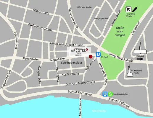 “The upper-middle-range ARCOTEL Onyx is nestled on the avenue of Reeperbahn, Hamburg’s risqué quarter filled with sex shops and nightclubs -- though it has family-friendly shopping by day.”