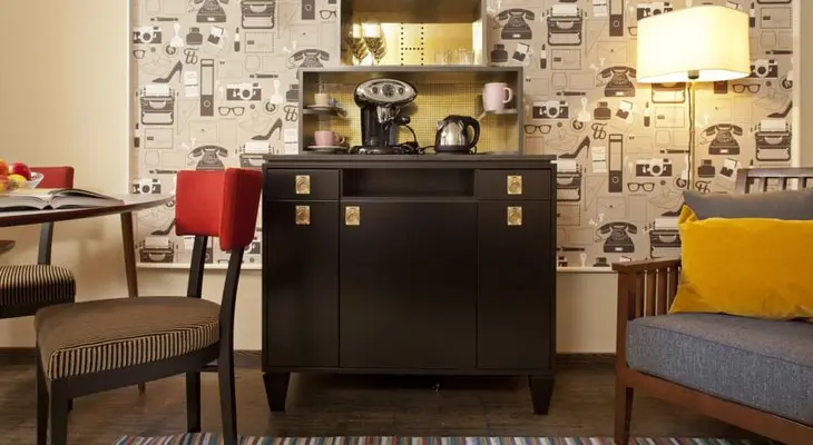 "There’s a nod to its 1950s heritage, with vintage typewriters and mid-century furniture and rooms go from studios to suites. There is a 24/7 bar, kitchen and lounge"