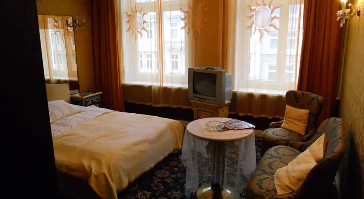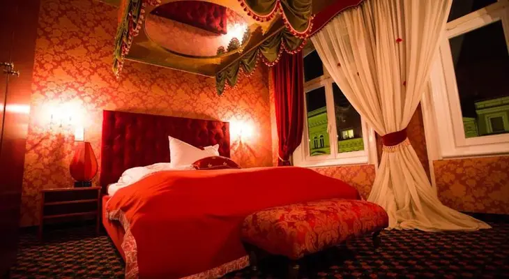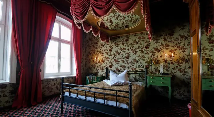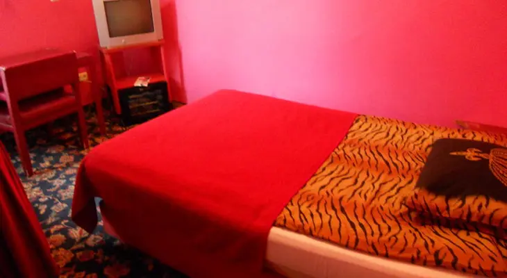 "Near the central train station and once a thriving brothel, this hotel and its red-and-black carpets, glossy wallpaper, and dinky chandeliers still exudes lasciviousness." Full review