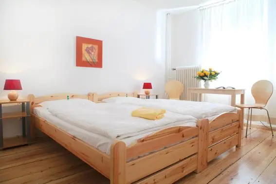 “This pension in a 19th-century townhouse provides 12 modern rooms, most with pine furnishings and wood floors that make a virtue of their simplicity.”