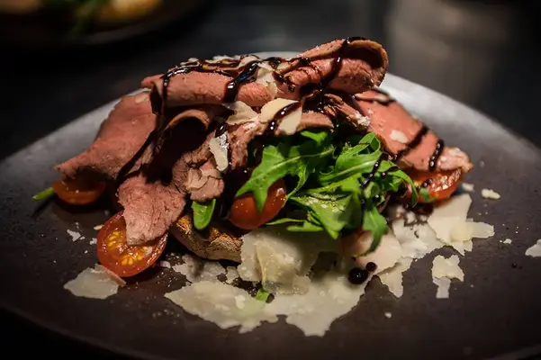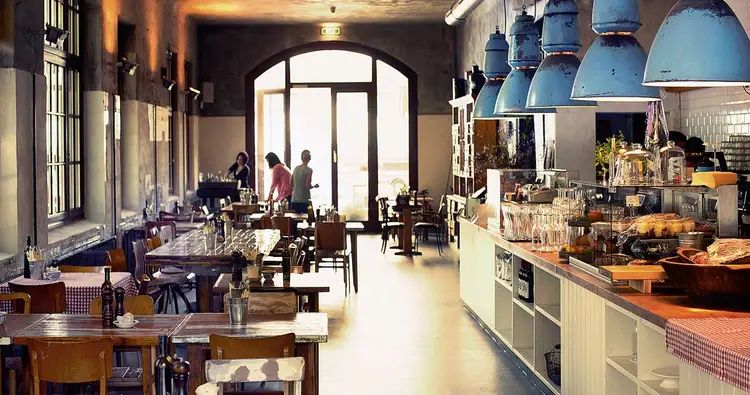 "Hip industrial-chic space divided into two options by budget: there’s a fine- dining menu in the main restaurant – steaks are excellent – or posh burgers and pastas...in a busy deli-café."