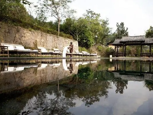 "Tranquil resort housed by the rustic structures of a former village, amid temples and tea fields near West Lake, 30 minutes from central Hangzhou." Full review