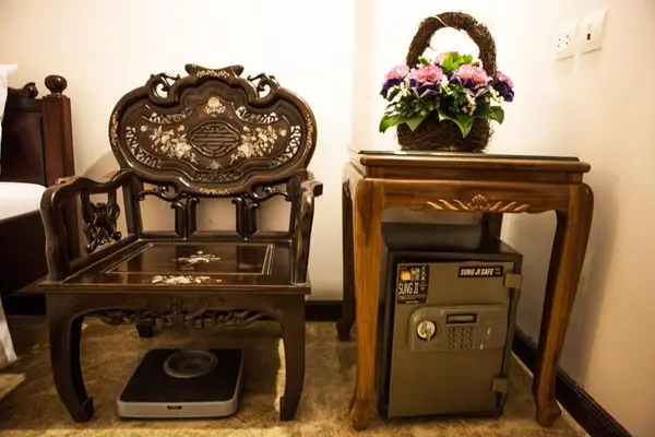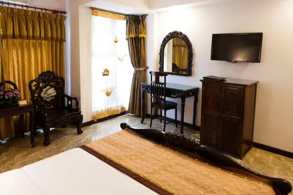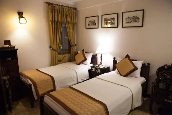 "This little hotel has more frills, airs, and graces than most other budget lodgings, as is evident from the "imperial-style" beds and the mother-or-pearl chairs."