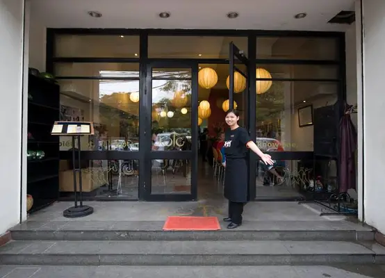 To avoid them, head for the second floor and eat at low tables while sitting on floor cushions, or go up to the rooftop terrace on the fourth floor and enjoy views over the Temple of Literature.