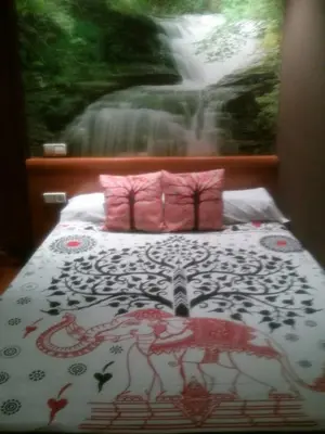 "Countrified feel, with stone floors, ferns lining the wooden-railed balconies and an attractive little garden out the back."