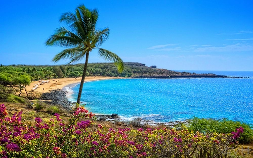 This palm-fringed, gold-sand beach is bordered by black-lava fingers, protecting swimmers from ocean currents. In summer, Hulopoe is perfect for swimming, snorkeling, or just lolling about. — Frommer's