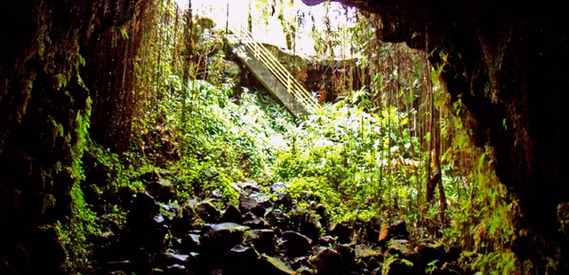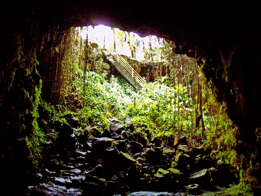 "Thanks to Hilo's abundant rainfall, this lava tube is lush with plant life. Concrete stairs lead down to the 2½-mile-long tube. There are no lighted areas and the ground is uneven and damp." Full review