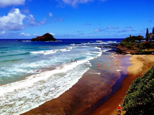 "This picturesque tan beach sits at the base of red cliffs with views toward tiny ʻAlau Island." Full review