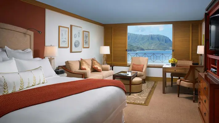 “Appealing 251-room wellness resort in a glorious setting on a promontory overlooking Hanalei Bay.”