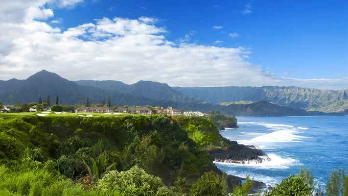 "This is one of Kauai's top resorts and is located about an hour from the Lihue Airport on the cooler, greener and wetter North Shore of the island."