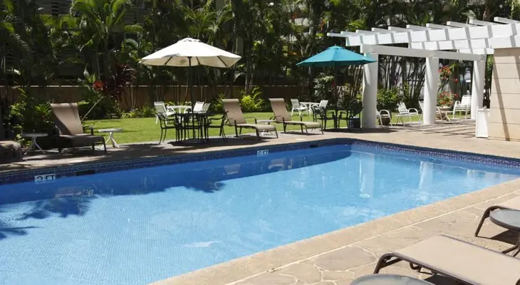 "Located along the Ala Wai canal minutes from Waikiki Beach, Ala Wai Golf Course, and more, this European-style resort features studios and one-bedroom suites with kitchenettes"