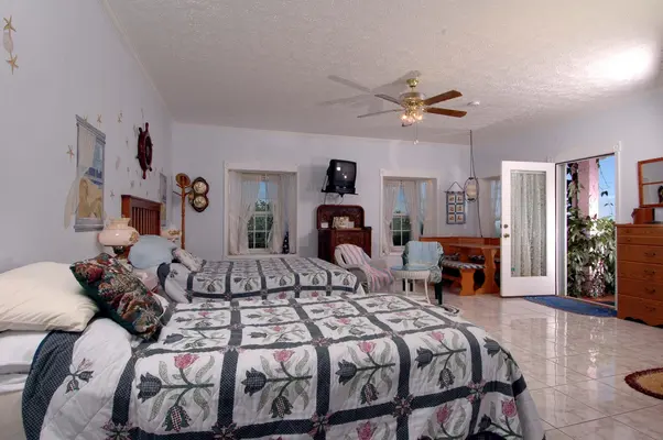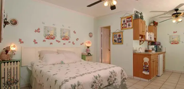 "Set in a fruit orchard well back from the highway, these three ‘cottages’ are private, separate rooms attached behind the owner’s house" Full review