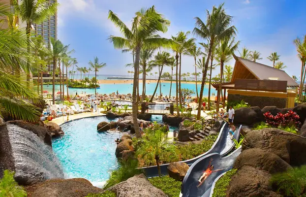 "The largest resort in Hawaii is a veritable village, with five towers, five pools, 20 bars and restaurants, 90 shops, direct beach access, and a separate lagoon." Full review