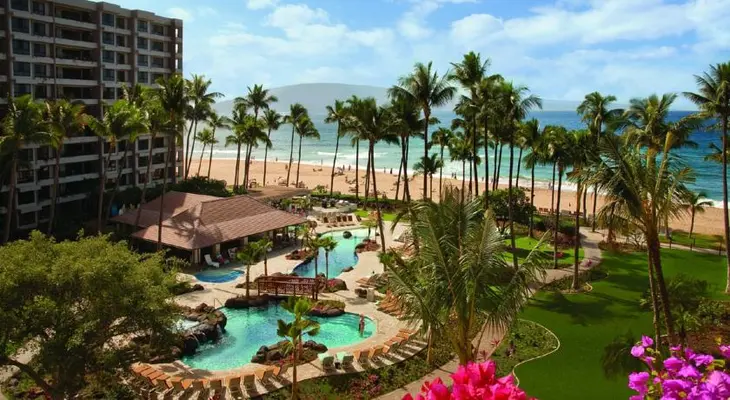 "This luxurious oceanfront condo complex sits on 8 landscaped acres in the center of Kaanapali Beach...resortlike extras include bell service, daily housekeeping, and a complimentary kids’ club" Full review