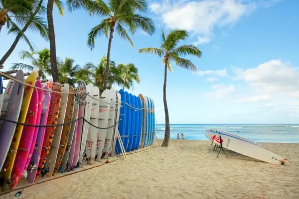 "This 17-story high-rise hotel is at the gateway to Waikīkī and is a short two blocks from the beach."
