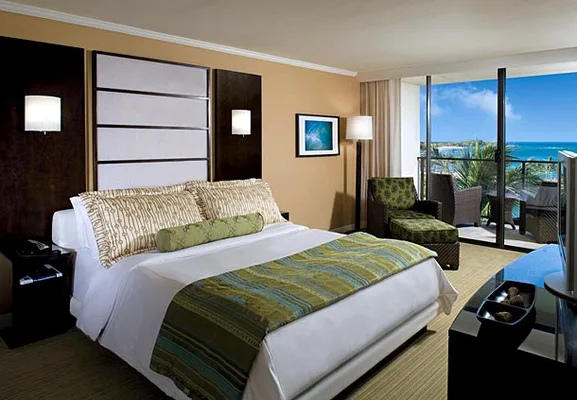 "Covering 15 acres with ancient fishponds, historic trails, and petroglyph fields, the Marriott has rooms with sleek modern beds, bright white linens, Hawaiian art, and private lanai." Full review