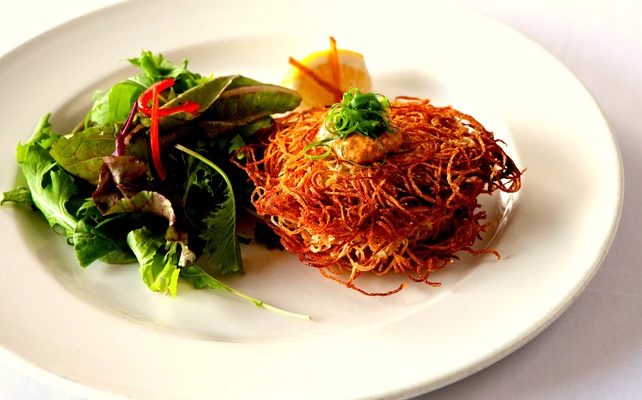 “With an understanding for what Hawaiians like, this compact, ever-busy neighborhood bistro has specialties such as Hawaiian clay salt steak.”