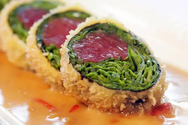 "Specialties include the Kapalua Butterfly Roll, made with salmon, crab, shiromi (white fish), and vegetables, and the shrimp cake with ginger-lime butter and cilantro pesto." Full review