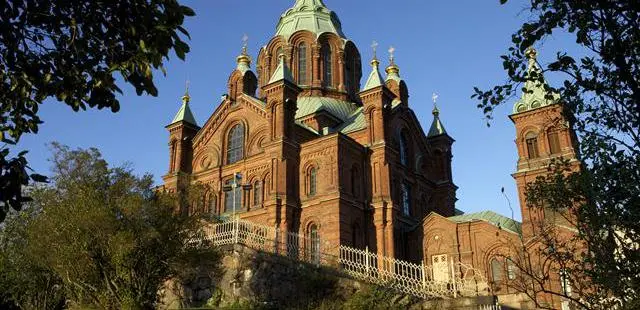 "An orthodox cathedral, erected on the Katajanokka peninsula at the time when Finland was under Russian...brightness of the interior, with its coloured mosaics and glittering gilded icons" Full review